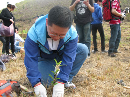 大家都按照大會的指導,小心奕奕地把樹苗放進泥土之中。