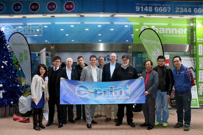 Group photo in front of the Kwun Tong Main Branch of e-print