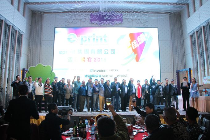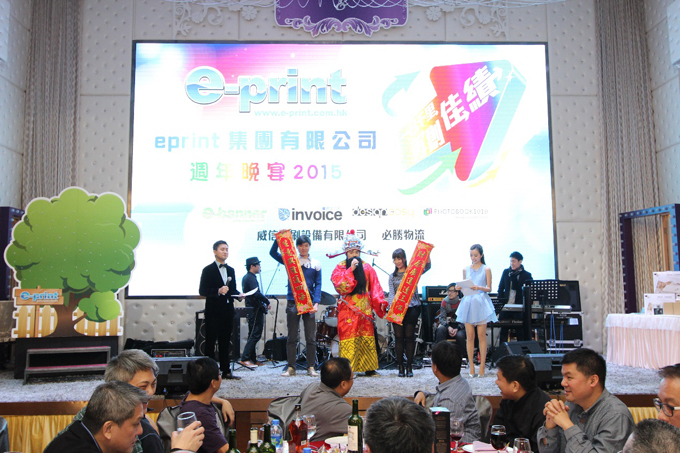 eprint Group Limited annual dinner held at Kowloon Bay with forty-nine tables on 7 Feb ,2015. Not only all of our colleagues were involved in the celebration, but also was honored to have a number of guests and friends to attend the dinner. We celebrated the Group anniversary and pre-celebrate the coming Lunar New Year with lot of fun together.