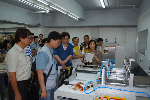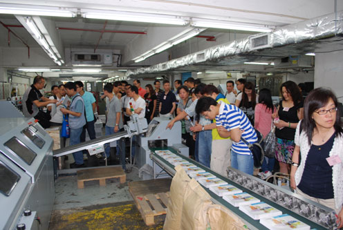 膠裝龍一條龍式的排頁、膠裝及切書生產流程,參觀人士都大感興趣。