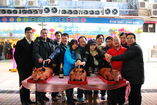 新春慶典,當然少不了燒乳豬、拉揮春及醒獅表演,非常熱鬧