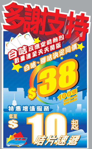 1個工作天交貨$ 15 / 5張 起可採用多款加工咭片較耐久