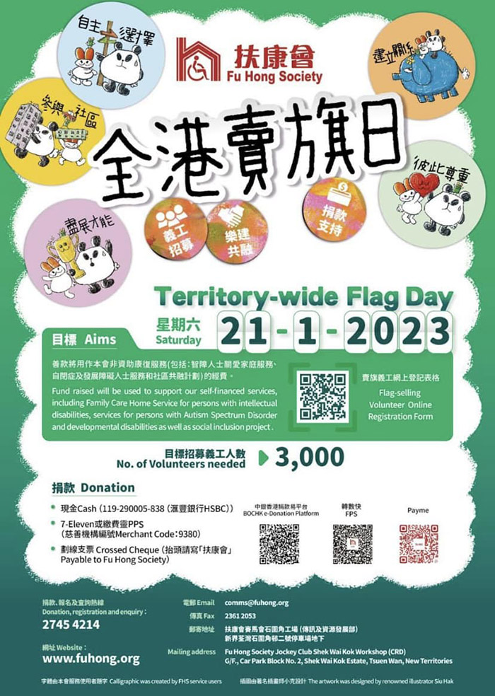 與扶康會攜手「齊建共融社會」,e-print支持2023年1月21日(星期六)全港賣旗日!e-print同事連同其家人一早於各個地區向途人賣旗,他們一個微笑或一句簡單的鼓勵,都會成為了他們的推動力,令大家更加投入,是次善款將用於發展扶康會非資助服務、智障人士、精神復元人士及自閉症及發展障礙人士服務經費。