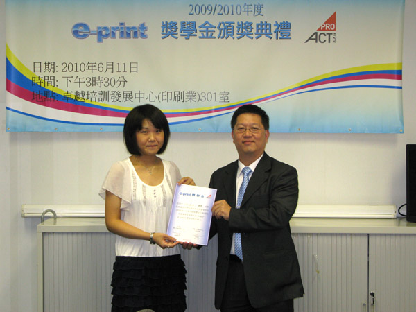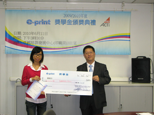 e-print植根於香港,在過去十載為了本地印刷業務貢獻良多。為培育下一代的印刷業接班人,e-print向卓越培訓發展中心(PRO ACT By VTC)的同學,提供e-print獎學金計劃,鼓勵莘莘學子投入印刷業積極學習,努力成為未來的印刷達人