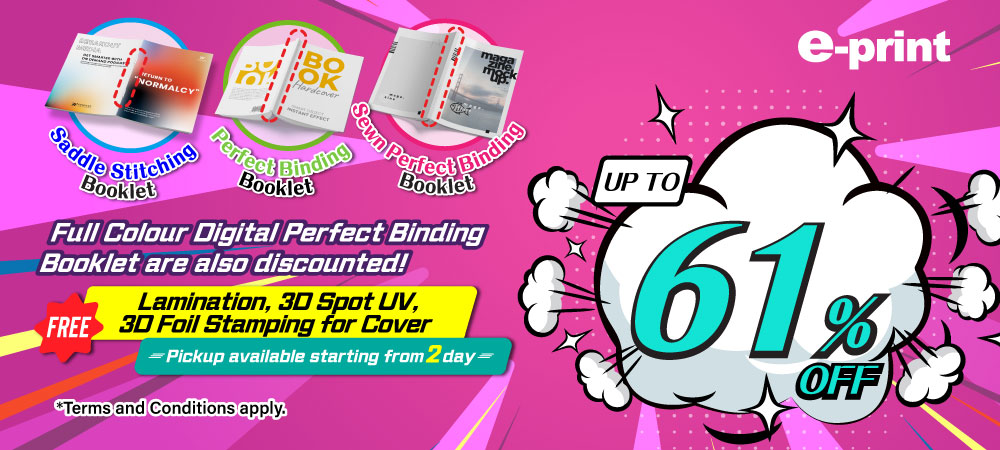 e-print provides Booklet / Brochure / Catalog / Pamphlet printing services with different binding options, including Saddle Stitching, Perfect Binding and Sewn Perfect Binding. You can print your book by black & white or full colour with different turning style. e-print also provides free paper cartons packaging which let you pick up your book easily and safely.